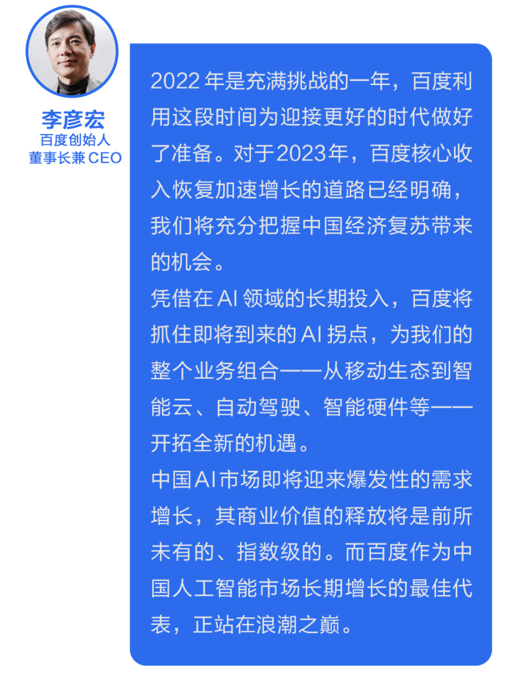 重磅官宣!"文心一言"要來了 0 1 百度在AI賽道上正在加速 2月22日,百度創始人、董事長兼首席執行官李彥宏在發給全員的財報信中透露,百度將在3月份推出生成式AI產品“文心一言”(ERNIE Bot),并計劃將搜索、智能云、Apollo自動駕駛、小度智能設備等多項主流業務與之整合。 0 2 文心一言的想象空間 AI、搜索,都是百度的標簽,百度也被大眾認為是最容易做成中國版ChatGPT的公司。全力沖刺研發大語言模型、生成式AI產品文心一言的百度可謂背水一戰。 在人工智能四層架構中,其中“文心一言”位于模型層。具體來看,深度學習框架層面,百度飛槳平臺在2022年底已凝聚535萬開發者,基于飛槳創建了67萬個模型,服務20萬家企事業單位,構建起繁榮的AI技術生態;文心在大模型層面已經形成知識增強的ERNIE 3.0系列、跨模態系列等底座模型。這都為百度打造文心一言提供了堅實的技術基礎。 過去幾年,百度持續使用人工智能技術改善搜索體驗。自2019年3月以來,百度文心大模型家族在改進搜索結果方面發揮了重要作用,如優化搜索排名、提升多模態搜索能力。 如果說傳統搜索,人們需要滾動鼠標瀏覽頁面,消耗時間和腦力,在浩如煙海的鏈接中做出篩選。而全新的搜索頁面,你可以看到由AI直接整理好的結果列表的摘要。 按計劃,文心一言也將率先應用于百度搜索,重塑信息的生成和呈現方式,創造下一代互聯網流量入口,這將進一步作用于百度移動生態用戶數與市場規模的增長。 0 3 語音 文心一言的推出還將對于智能語音助手產生重要的影響。隨著智能語音助手的不斷普及,用戶對于語音交互的體驗要求也越來越高。文心一言作為一款優秀的生成式對話產品,能夠更好地模擬人類對話,提供更加自然、流暢的語音交互體驗。 0 4 意義 文心一言的推出對于人工智能產業具有重要的意義。它不僅能夠推動中國AI市場的快速發展,更能夠為人們帶來更加便捷、高效、智能化的生活體驗。相信在未來,文心一言將成為人工智能領域的重要代表之一,為行業的不斷創新和進步做出更大的貢獻。 文心一言的推出不僅對于中國AI市場的發展有著重要的意義,對于全球人工智能產業的進步也起到了積極的推動作用。作為一款能夠更好地模擬人類對話的生成式對話產品,文心一言的推出將為人工智能領域的發展帶來更多的可能性。 除了智能客服行業和智能語音助手產業,文心一言的推出還將對于其他領域產生重要的影響。例如,在醫療健康領域,文心一言將有望幫助醫生更好地與患者溝通,提供更加個性化的診療服務。在金融領域,文心一言將有助于提升金融機構的客戶服務質量和效率。在教育領域,文心一言將有望為學生提供更加智能化、個性化的學習體驗。這些都將為人們的生活帶來更多的便利和舒適。 文心一言的推出是人工智能領域的一次重要突破,體現了百度在人工智能領域的技術實力和創新能力。相信在未來,文心一言將繼續發揮重要作用,為人工智能領域的發展帶來更多的新機遇和新挑戰。 0 5 影響 人工智能技術正在以驚人的速度發展,而ChatGPT則是其中最為先進的一種應用。ChatGPT不僅可以用于智能客服、語音助手、情感分析等領域,還可以用于醫療、教育、金融等多個領域。隨著中國版的ChatGPT的問世,它將會在更多領域得到應用,對于提高人們的生活質量和工作效率,以及促進AI技術的發展,都將起到積極的作用。 例如,在醫療領域中,ChatGPT可以用于智能診斷,為醫生提供更好的醫療輔助,幫助醫生更好地診斷和治療疾病。在教育領域中,ChatGPT可以用于智能輔導,為學生提供更好的學習輔助,幫助學生更好地掌握知識。在金融領域中,ChatGPT可以用于智能客服,為用戶提供更好的服務體驗,幫助用戶更好地理解和使用金融產品。 中國版的ChatGPT的問世,將會在中國的AI技術發展中發揮重要的作用。它的優勢不僅在于語言和文化的適配,還在于對中國本土服務和場景的支持。同時,它也將會對于提升人們的生活質量和工作效率,以及推動AI技術的發展,都起到積極的作用。讓我們期待明天更好,期待中國版的ChatGPT的到來。 End